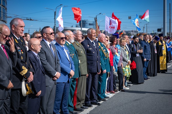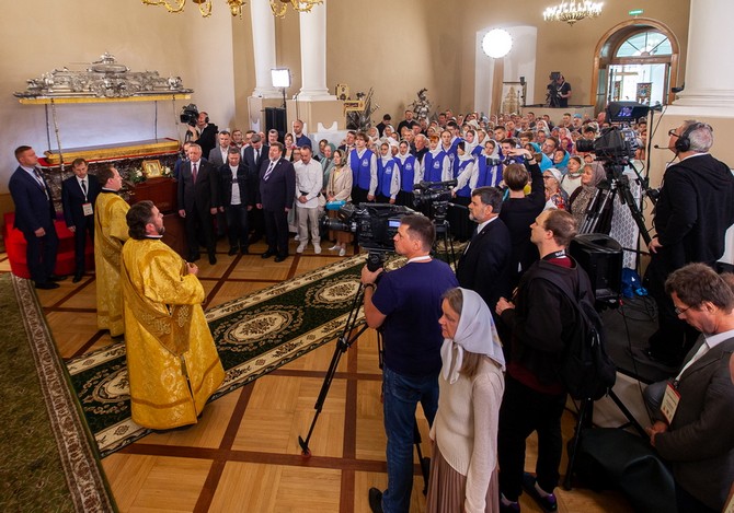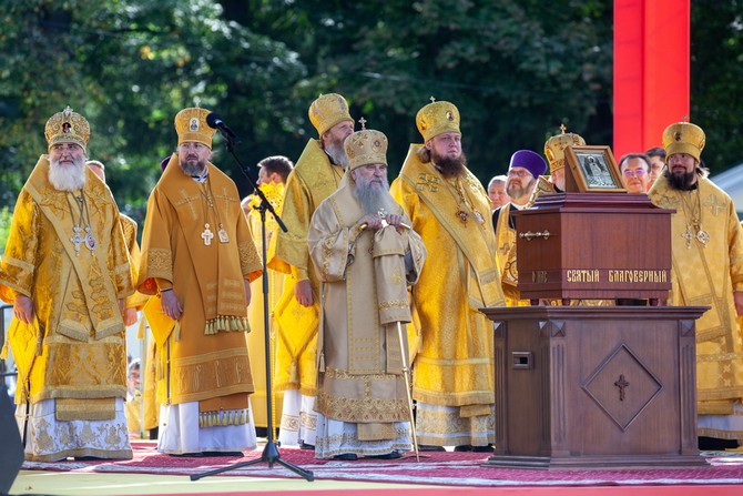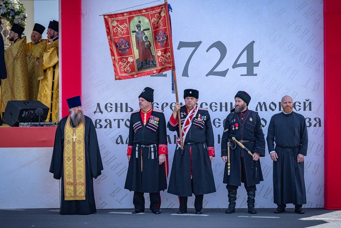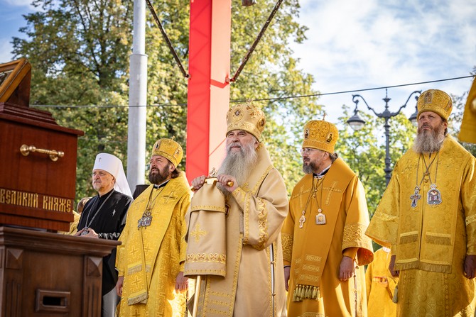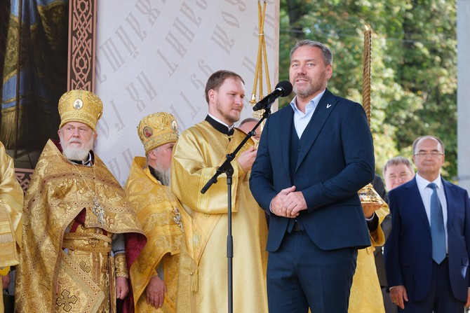 «Мы также являемся его наследниками. Нынешнее торжество — тому подтверждение. Наша святая обязанность — не только хранить православную веру, традиции и единство, но и передавать эти ценности следующим поколениям. Радостно, что сегодня собралось много молодежи — церковнослужителей, прихожан, студентов, волонтеров. Многие пришли семьями, с детьми, разделили радость праздника с родными и близкими, вместе совершили молитву за Отечество. Это важно в нынешнее время, когда страна проходит судьбоносные испытания и определяется ее будущее. Как и всегда, сейчас у народа есть точка опоры и внутренний стержень, духовная сила — вера, которая нас укрепляет и вдохновляет. С нами правда, а значит — с нами Бог. Будем укрепляться в вере, любви к Родине и друг ко другу. Желаю вам помощи Божией, единомыслия и доброго здравия на путях вашей жизни», — завершил приветствие митрополит Варсонофий.