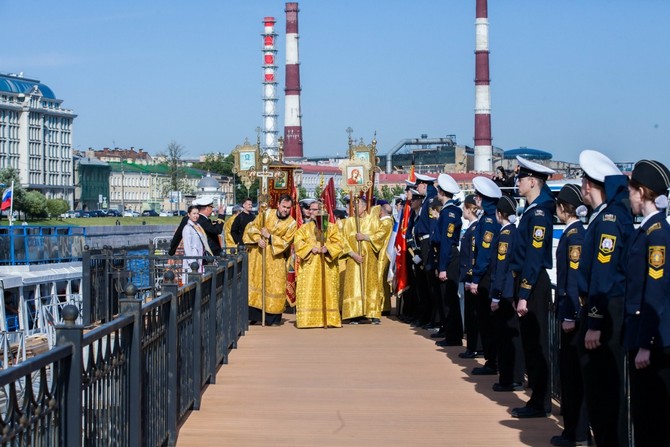 Частью праздника стало водное шествие по Неве из крепости Орешек к лавре, повторяющее последний этап перенесения мощей святого в 1724 году. Божественную литургию в Благовещенском соборе Шлиссельбурга совершил епископ Тихвинский и Лодейнопольский Мстислав. Затем он отслужил молебен в крепости Орешек, где в 2024 году была установлена плита в память о пребывании мощей в Иоанно-Предтеченском соборе, ныне разрушенном. Участники шествия на катамаране прибыли к Синопской набережной и присоединились к собравшимся на площади Александра Невского.