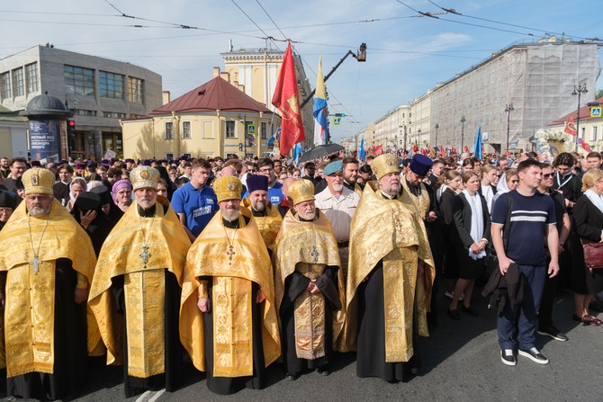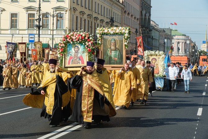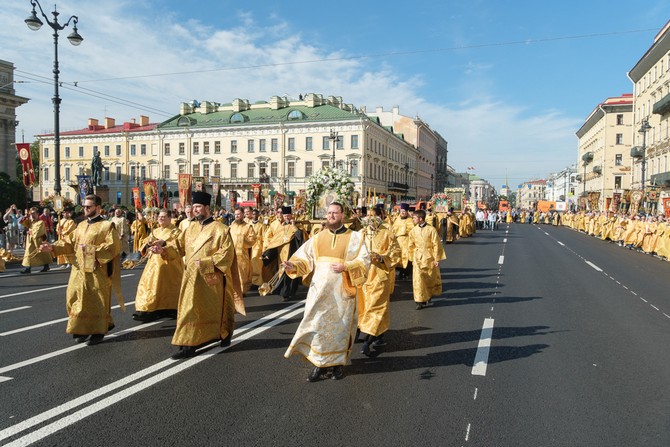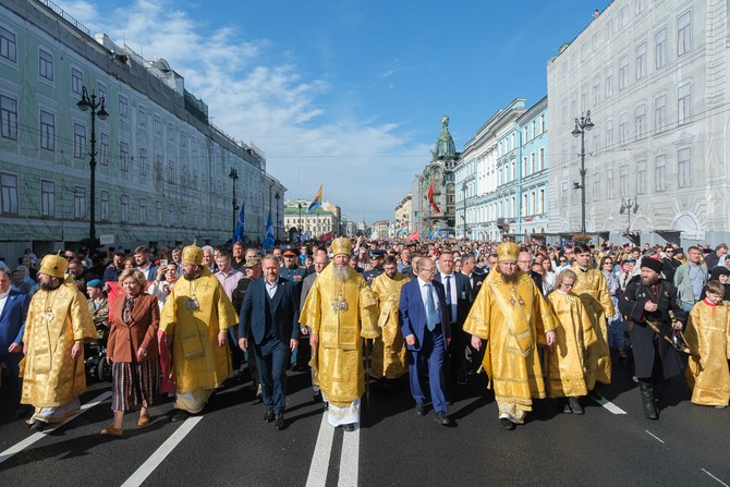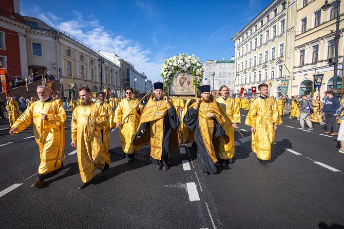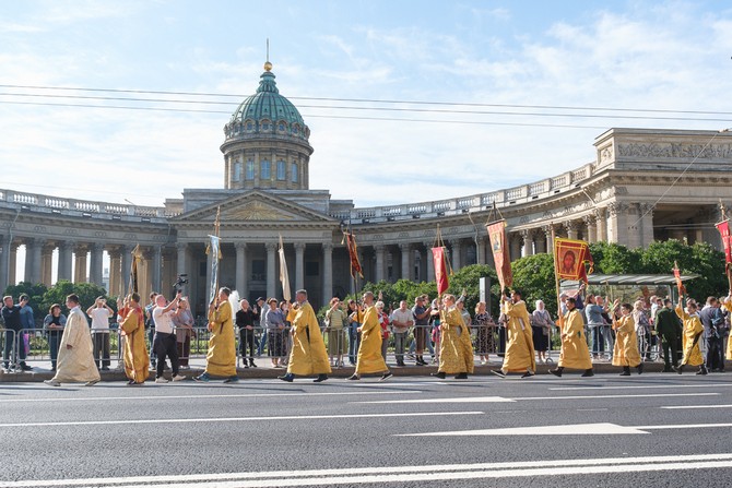 После богослужения состоялся крестный ход по Невскому проспекту с Казанской иконой Божией Матери, в котором приняли участие более 70 тысяч человек.