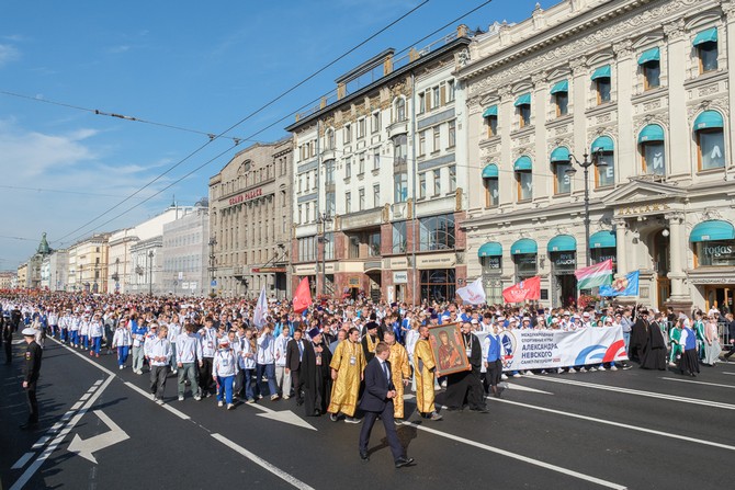 «Девиз крестного хода — «Вера. Традиции. Единство», — продолжил архипастырь. — Они неразрывно связаны с жизнью святого Александра Невского. Вера в Бога была ее центром, она давала князю силы верно отвечать на вызовы времени и одерживать исторически важные победы. Александр Ярославич боролся за то, чтобы народ хранил верность духовным традициям, выбору своего самобытного пути. Он противостоял попыткам захватчиков с Запада навязать чуждую нам веру, поработить нас политически и духовно. Во время его жизни Русь была разделена, охвачена усобицами, ослаблена вторжениями врагов. Он хотел видеть единое и сильное государство и трудами заложил для этого прочный фундамент, показал пример самозабвенного служения Родине. Потомки исполнили его чаяния — Россия стала великой державой, верной заветам князя».