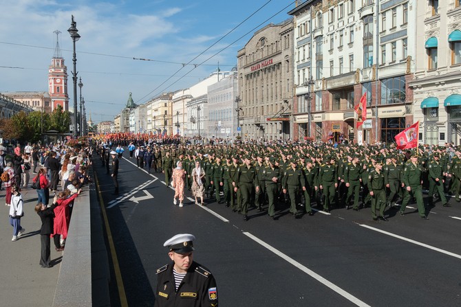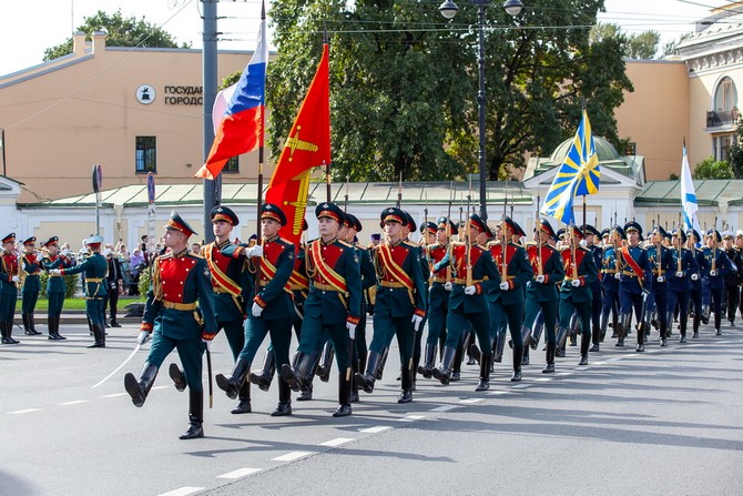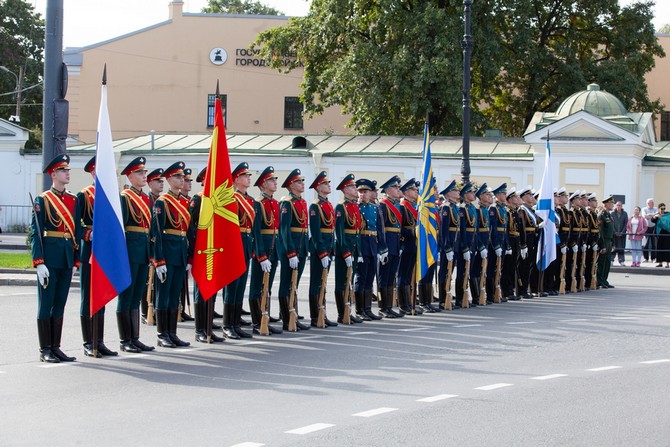 Праздник на площади завершился прохождением роты почетного караула и военного оркестра штаба ЛенВО.