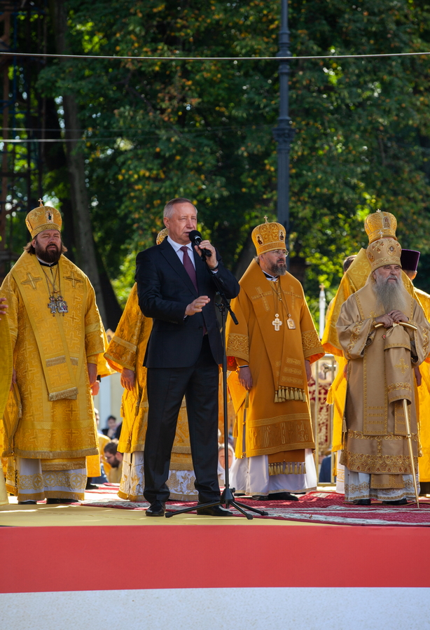 Был совершен малый крестный ход с мощами святого из лавры на площадь его имени, где правящий архиерей отслужил молебен небесному покровителю Санкт-Петербурга в сослужении епископов Кронштадтского Вениамина, Выборгского и Приозерского Варнавы, Тихвинского и Лодейнопольского Мстислава, Гатчинского и Лужского Митрофана, Петергофского Силуана, Сарапульского и Можгинского Павла, Нефтекамского и Белебеевского Митрофана.