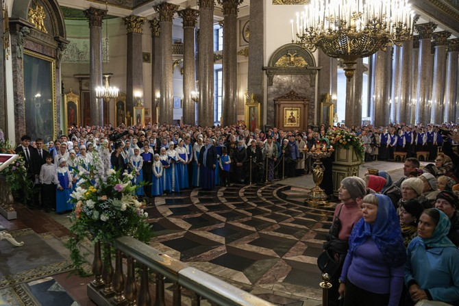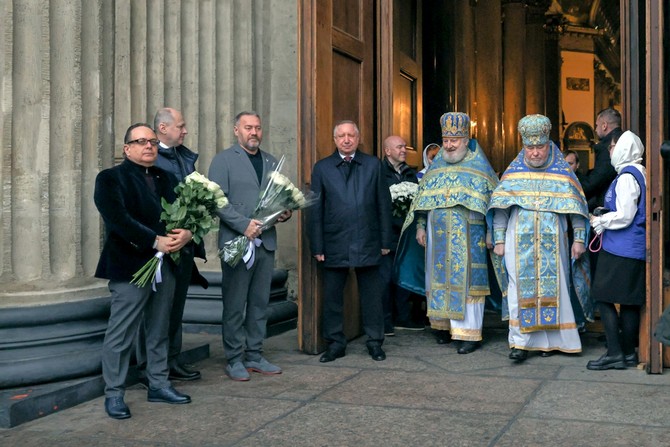 Среди молящихся были губернатор Александр Беглов, председатель Заксобрания Александр Бельский, глава администрации Фрунзенского района Константин Серов, главврач детской больницы № 2 Автандил Микава.