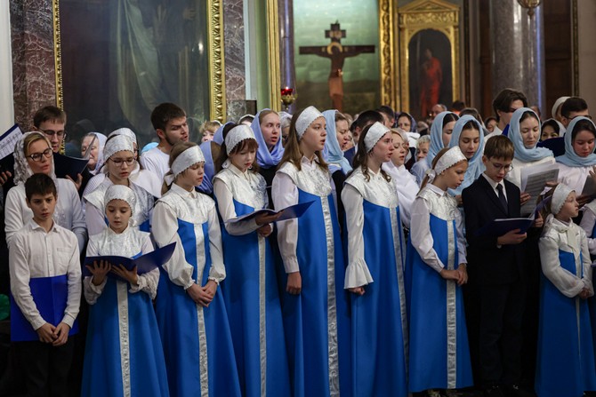 Пели хор собора под управлением Светланы Румянцевой и хор детской воскресной школы под управлением Марии Красноцветовой.