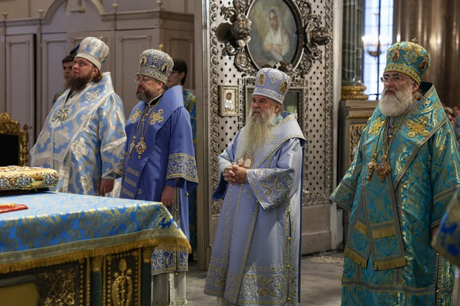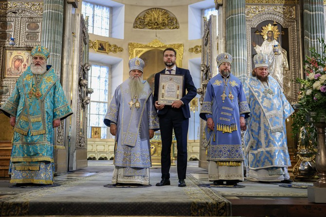 «Когда будет на нашей земле связь с Богом, с Небом, когда мы будем призывать в молитвах Господа и Богородицу, Бог будет покрывать нас, и Царица Небесная будет заступаться за нас. Сегодня, когда на Россию ополчилось столько западных стран, а мы защищаемся, у нас все получится, поскольку мы с Богом, у нас президент православный, православные губернаторы, мы стоим на правильном пути. Мы должны посещать храм Божий, исповедоваться, причащаться, молиться, тогда заступление Небесное будет над народом. Поздравляю вас с праздником, желаю вам хорошего настроения, радости. Надо быть едиными в семьях, на работе, в городе — где единение, там и спасение», — завершил проповедь митрополит Варсонофий.