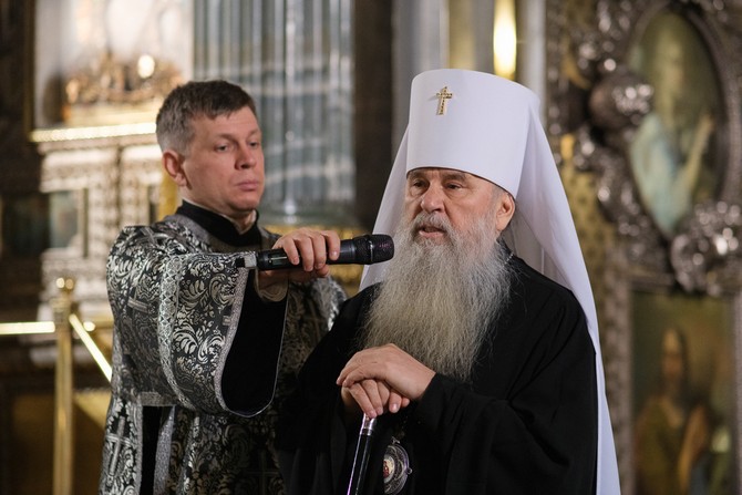 «По милости Божией мы вступили на поприще Великого поста, — сказал владыка в проповеди. — Это время дано нам для исправления, покаяния, совершенствования. В чем мы должны возрастать? Господь говорит: «Будьте совершенны, как совершен Отец ваш Небесный» (Мф.5:48). Поскольку Бог есть любовь, наше совершенство должно проявляться в любви. Господь дал нам заповедь любить Бога и ближнего, и пост дан для этого в помощь как средство. Мы должны любить все, что вокруг нас: природу, людей, весь мир, по мере сил заботиться обо всех, с кем Господь нас сводит на земле. В этом и надо совершенствоваться. Мы родились на Руси, где наши предки задолго до нас выбрали православную веру, желая жить по правде Божией. Поэтому нам многое открыто, но с нас и много спросится за то, что знать мы знаем, но не исполняем. Мы должны, изучая историю, видеть, как потрудились люди, жившие до нас. Вот мы стоим в прекрасном соборе. Более двух столетий назад люди его построили, и мы можем в нем сегодня молиться, спасаться».