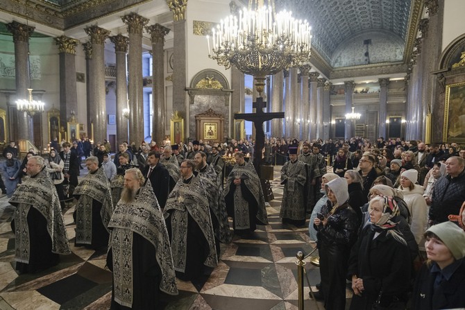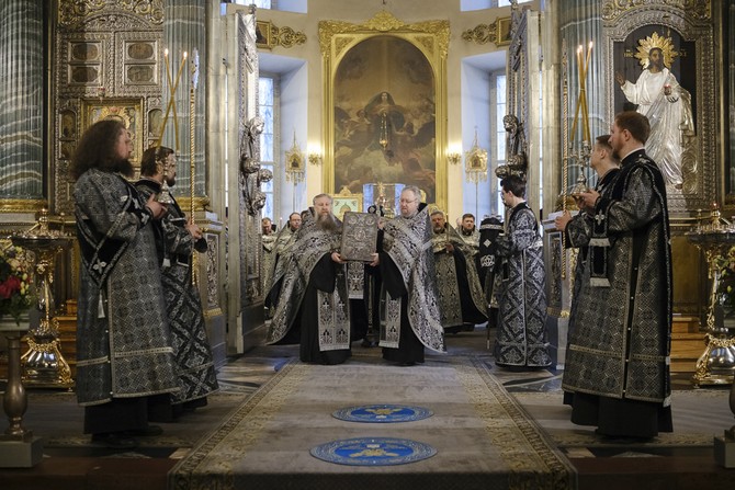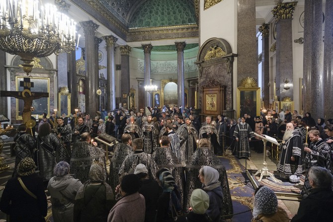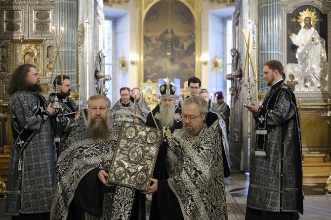 В Неделю 3-ю Великого поста, 15 марта, митрополит Санкт-Петербургский и Ладожский Варсонофий возглавил чинопоследование пассии в Казанском кафедральном соборе.
