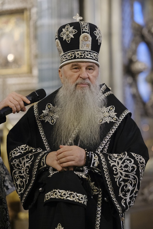 Его Высокопреосвященству сослужили ключарь протоиерей Андрей Герасимов, председатель приходского совета протоиерей Александр Пашков, клир собора и другие священнослужители.